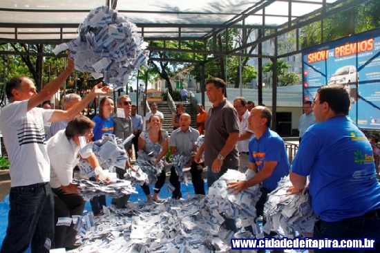 Na presença de um público expressivo que se reuniu parte baixa da Praça Bernardino de Campos, o presidente da ACEI, José Aparecido da Silva, comandou o sorteio dos cinco vale-compras no valor de R$ 300,00 cada e um automóvel Ford Ka. A diretoria da ACEI compareceu maciçamente e contou, ainda, com a presença do prefeito municipal José Natalino Paganini, do presidente da câmara, Carlinhos Sartori, do secretário Carlão Jamarino, dos vereadores Joilson, Luiz Machado, Marquinhos, Zé Branco e o Dr. Rafael.