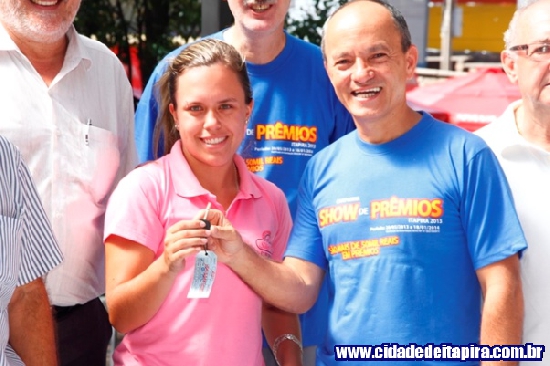 Já a jovem Ana Carolina Soares Pizzi, 19 anos, que trabalhava na Padaria São Paulo de propriedade do pai dela recebeu um telefonema direto da praça que em princípio foi interpretado por ela como um trote. Mas não era, ela tinha acabado de ser sorteada com um Ford Ka. Em pouco tempo lá estava ela no coreto, toda sorridente, recebendo a chave do seu novo carro zero quilometro.