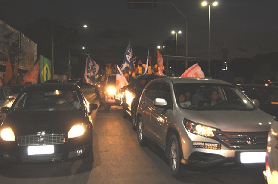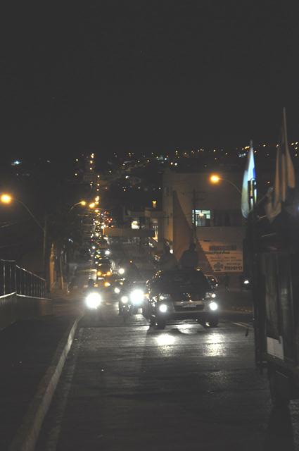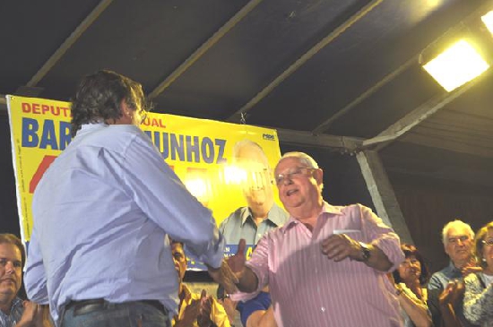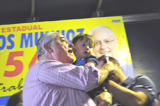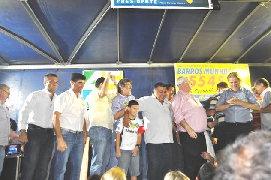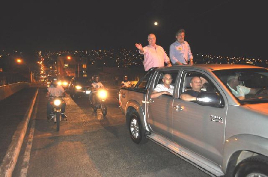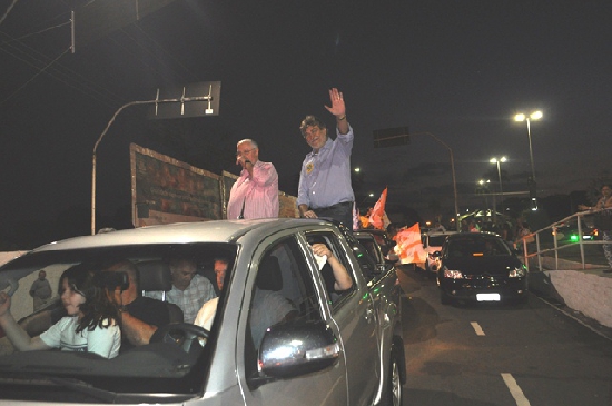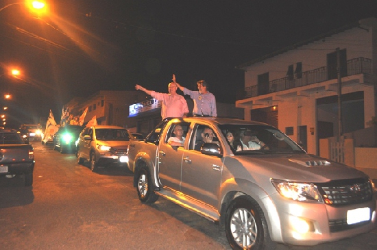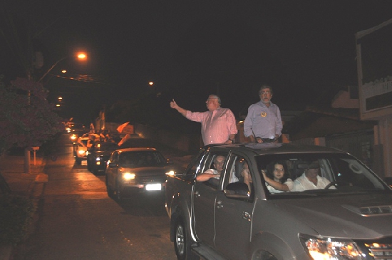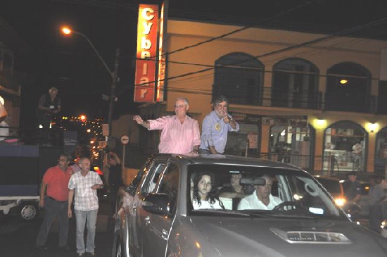 Cerca de 150 veículos seguiram a caminhote que levou Munhoz e Paganini até a Praça Bernardino passando pelas principais ruas da cidade. Munhoz foi recebido com grande festa, abraços e cumprimentos. Mais de mil pessoas, segundo a organização do evento, já estavam defronte ao caminhão montado em frente ao Circolo Italiano. No palanque prefeitos e principais apoiadores de toda região se fizeram presentes e falaram dos bons momentos de campanha e do prazer em retribuir ao trabalho de Munhoz junto ao governador e órgãos estaduais.