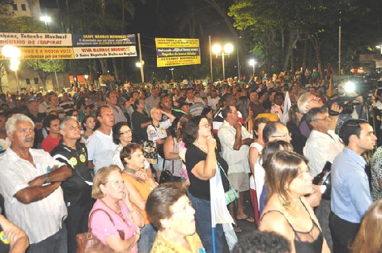 Esta quarta-feira, dia 8 de outubro, a Praça Bernardino reviveu os áureos tempos dos grandes comícios. Os políticos modernos substituíram os comícios pela comunicação televisiva e internet. Poucos se aventuram em organizar e realizar o evento em praça pública, temem falar para meia dúzia de gatos pingados e oferecer o fracasso aos opositores. Só os grandes líderes, os grandes oradores tem a coragem de arriscar o prestígio na forma mais autêntica de se fazer política: aquela em que o eleitor fica cara a cara com político e com as suas ideias.