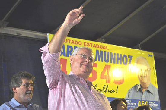 Antes Totonho discursar a Banda Lira entoou o Tema da Vitória (musica eternizada por Ayrton Sena) e, por toda cidade, o espocaram rojões e fogos de artifícios. Em sua fala, Munhoz agradeceu o trabalho dos apoiadores e colaboradores, os votos recebidos em Itapira e nas setenta e duas cidades que sufragaram o seu nome. Pediu apoio para levar Aécio Neves ao Palácio do Planalto para que Brasil caminhe no rumo certo e faça o Brasil voltar a crescer. No encerramento fez um agradecimento especial a Nossa Senhora da Penha, à sua esposa e aos filhos pela força dada nos momentos mais difíceis. “Eu quero ver os meus netos crescerem, mas eu posso dizer que se eu morresse hoje, morreria feliz por tudo que vivi nessa campanha e com esse resultado fabuloso. Muito obrigado!”, disse Munhoz num momento de grande emoção.