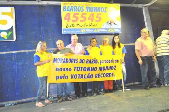 Barros Munhoz foi reeleito deputado estadual com 194.938 votos, superando o próprio recorde que era 183.859 obtidos em 2010, um aumento de 6%. Foi o sexto mais votado no estado de São Paulo. Dos seis mais votados, Munhoz foi o único que não partiu da capital e grande São Paulo com a maioria dos votos, por essa razão, Barros Munhoz foi o mais votado do interior. Do berço, Itapira, Totonho recebeu 25.907 votos, equivalente a 69,85% dos votos válidos, registrando a maior votação proporcional por município do estado de São Paulo.