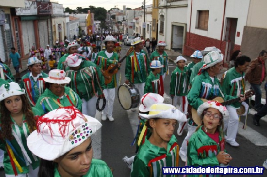 Logo à frente estavam os congadeiros, seguidos pelos festeiros, trio elétrico e, finalmente, pelo andor do santo padroeiro. Além do padre Bernardelli, os padres Tarlei Navarro, da paróquia Santo Antônio, e Erique Fernando Bordini, participaram do evento.
