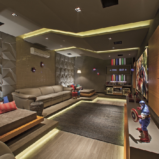 1º lugar – Home Cinema, assinado pelas arquitetas Maria Cristina Sampaio Franco e Roseana Desenso Monteiro e pela designer de interiores Vani Mazoni