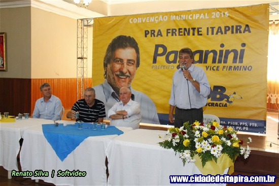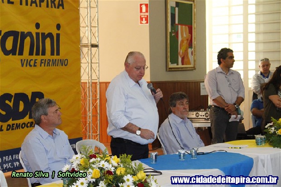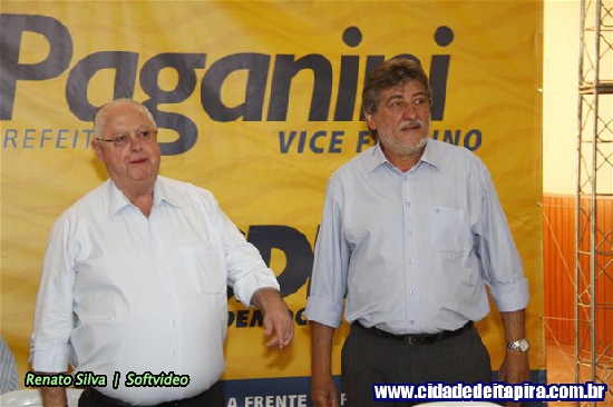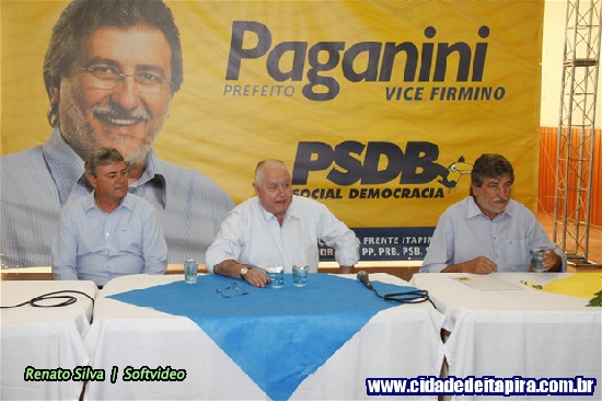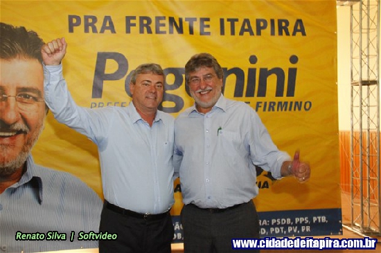 30/07/2016 | Paganini é candidato e anuncia Firmino Sanches de vice-prefeitoO prefeito José Natalino Paganini (PSDB) confirma, sua candidatura neste sábado (30), que vai concorrer ao cargo de prefeito de Itapira nas eleições deste ano. Ele também anunciou que terá como candidato a vice-prefeito o advogado e ex-bancário Firmino Sanches Filho (PR).