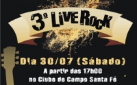 Sábado, dia 30 de julho o rock’n roll rola solto na terceira edição do Live Rock, o evento, que irá reunir quatro bandas de rock, acontecerá no campo de futebol do Clube de Campo Santa Fé.
