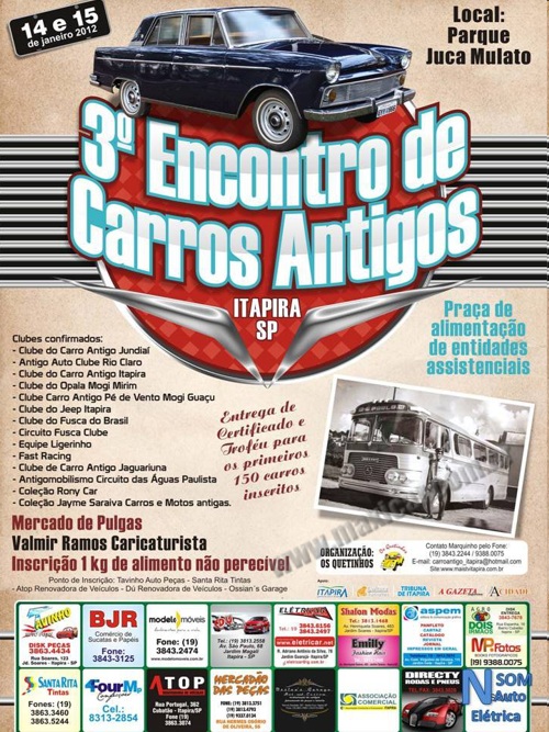 10/01/2012 | 3º Encontro de Carros Antigos de Itapira dia 14 e 15 de janeiro