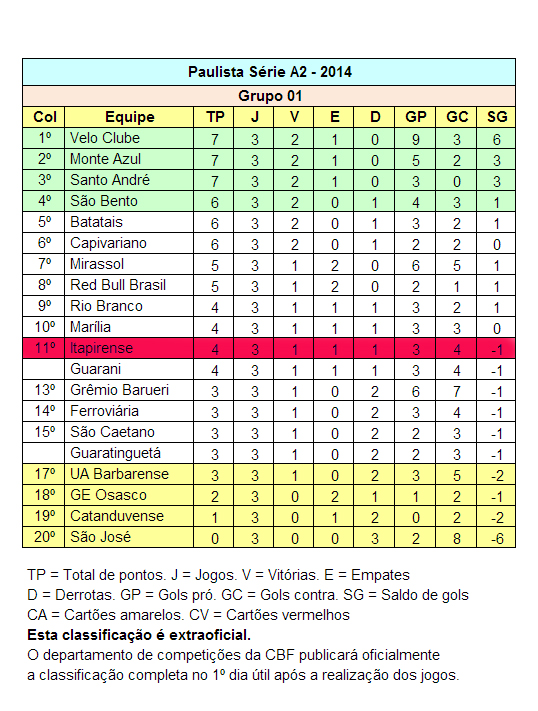 02/02/2014 | Acompanhe a classificação atualizada da Série A2
