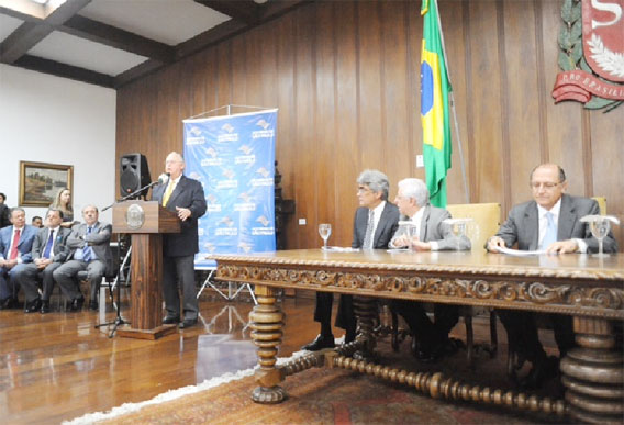 O presidente da Assembleia Legislativa Barros Munhoz compareceu na quarta-feira, 19/10, à cerimônia de assinatura do decreto para pagamento da Bonificação por Resultados aos funcionários do Departamento de Estradas e Rodagem (DER), conforme determina a Lei Complementar 1.121, de 30 de junho de 2010. O decreto foi assinado pelo governador Geraldo Alckmin, no Palácio dos Bandeirantes.