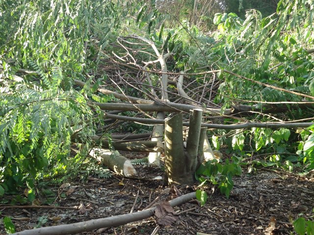 A forma como as árvores foram erradicadas, inclusive com corte de árvores nativas, causou indignação na Escola Interativa, localizada nas proximidades. Uma das sócias, Maria da Penha Siqueira Stevanatto, esteve no local.