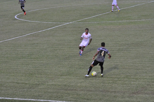 Aos 12 minutos Roberto Jacaré foi na linha de fundo e cruzou para Ibson que recebeu dentro da área, bateu forte a bola passou perto.