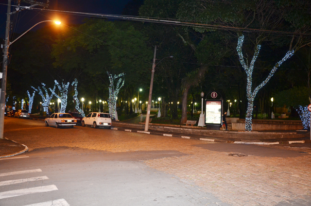 No Parque Juca Mulato, parte da iluminação foi testada na noite de terça-feira, antecipando como deverá ficar a decoração em um dos pontos mais visitados da cidade.