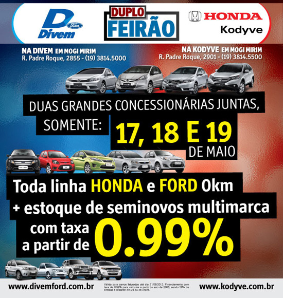 17/05/2012 | Duplo feirão Ford Divem - Honda Kodyve