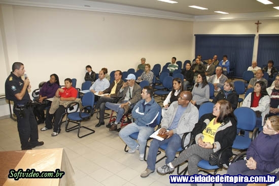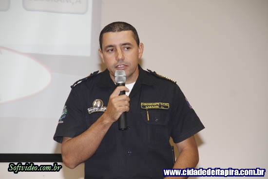 As Guardas Civis Municipais Paula e Berenice, responsáveis pelo projeto de prevenção, juntamente com o Comandante Diretor da Guarda Municipal, Sabadini, apresentaram trinta e um compromissos para a diminuição e prevenção de crimes.