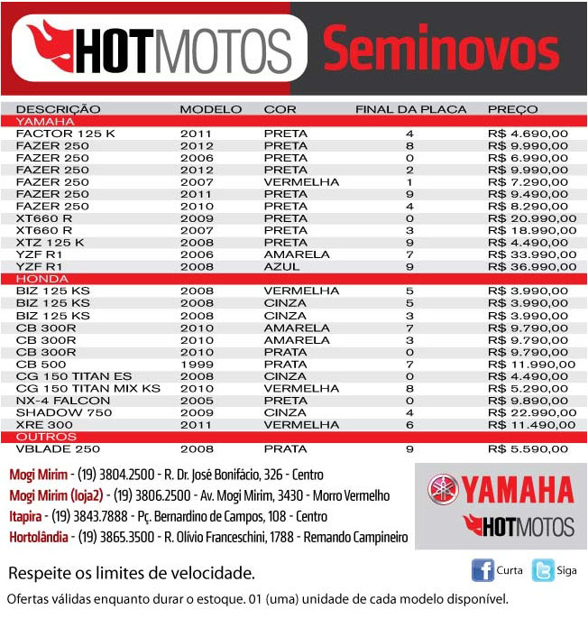 13/11/2012 | Hotmotos - Motos Seminovas pelo menor preço