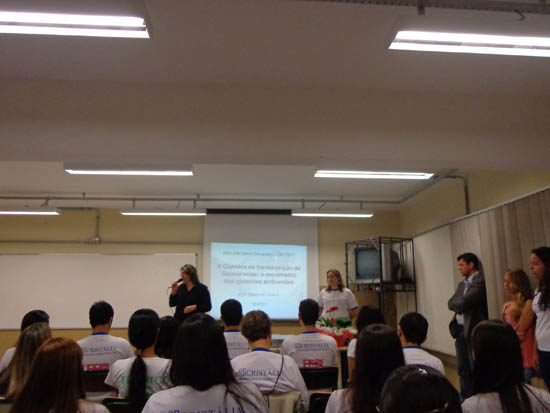 Questões atuais também foram abordadas. O professor Sidnei de Lima Junior apresentou aos alunos a palestra “A Química na transposição das Geociências: o movimento das questões ambientais”. Através da palestra “Drogas, qual é o barato?”, Silvia Helena Cestarei Oliveira explanou de forma muito interessante sobre diversos tipos de drogas e as consequências do uso.