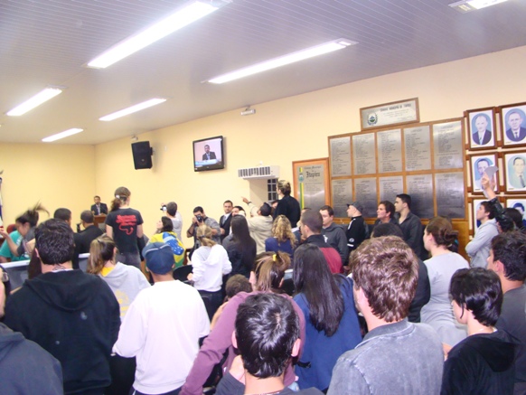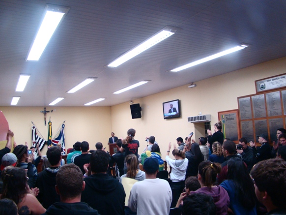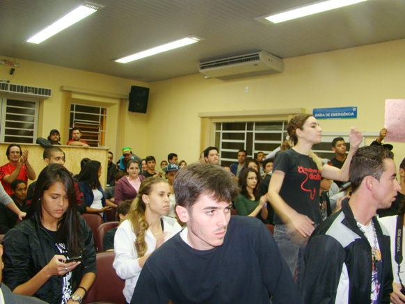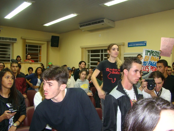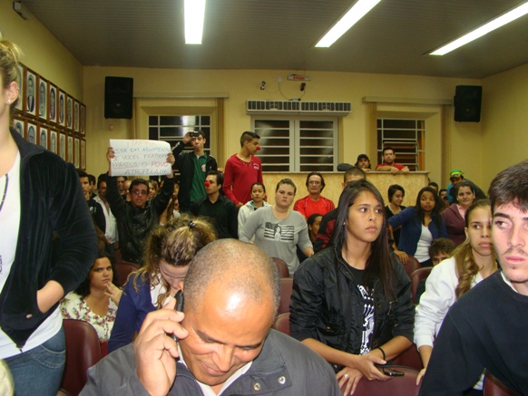 Cerca de sessenta pessoas tomaram a sessão da Câmara Municipal da noite de ontem, terça-feira, engrossando as manifestações que nasceram na capital paulista contra a majoração no valor da tarifa de R$ 3,00 para R$ 3,20, organizado pelo Movimento Passe Livre, e como um rastilho de pólvora, tomou conta das capitais brasileiras e avança para as cidades interioranas e ganhou uma larga pauta de reivindicações, como corrupção, impunidade, PEC 37, o aumento dos homicídios, os gastos com os estádios para a Copa, IDH brasileiro, a qualidade das escolas e hospitais públicos, enfim, todas as mazelas sofridas por um povo que se apresentava anestesiado.