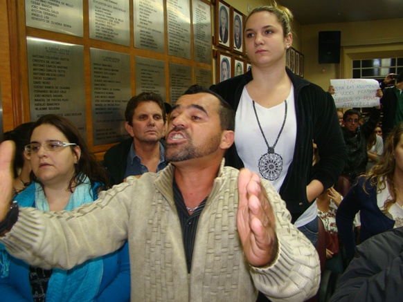 A postura dos vereadores, diga-se de passagem, foi bem diferente em movimentos anteriores, quando manifestantes tomaram as dependências da nossa casa de lei, que chamou a polícia militar e a guarda municipal para garantir a “segurança e a ordem”. Em nenhum momento os vereadores fizeram qualquer comentário ou responderam agressivamente ao manifesto. Os vereadores Marquinhos, Rafael, Cesar e Água Suco chegaram usar a tribuna para tentar estabelecer a abertura do diálogo, perceberam a total impossibilidade e encerraram suas falas, que apesar do clima, não foram duramente hostilizados. Depois de suspender temporariamente a sessão, o presidente Carlinhos Sartori encerrou os trabalhos alegando falta de condições.