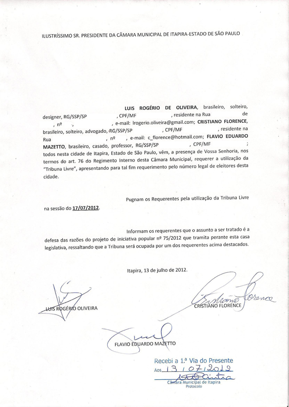 13/07/2012 | Manifestantes requerem Tribuna Livre