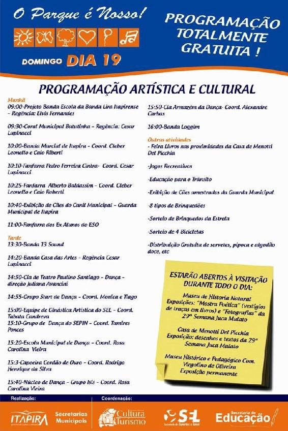 17/09/2010 | O parque é nosso acontece neste domingo dia 19