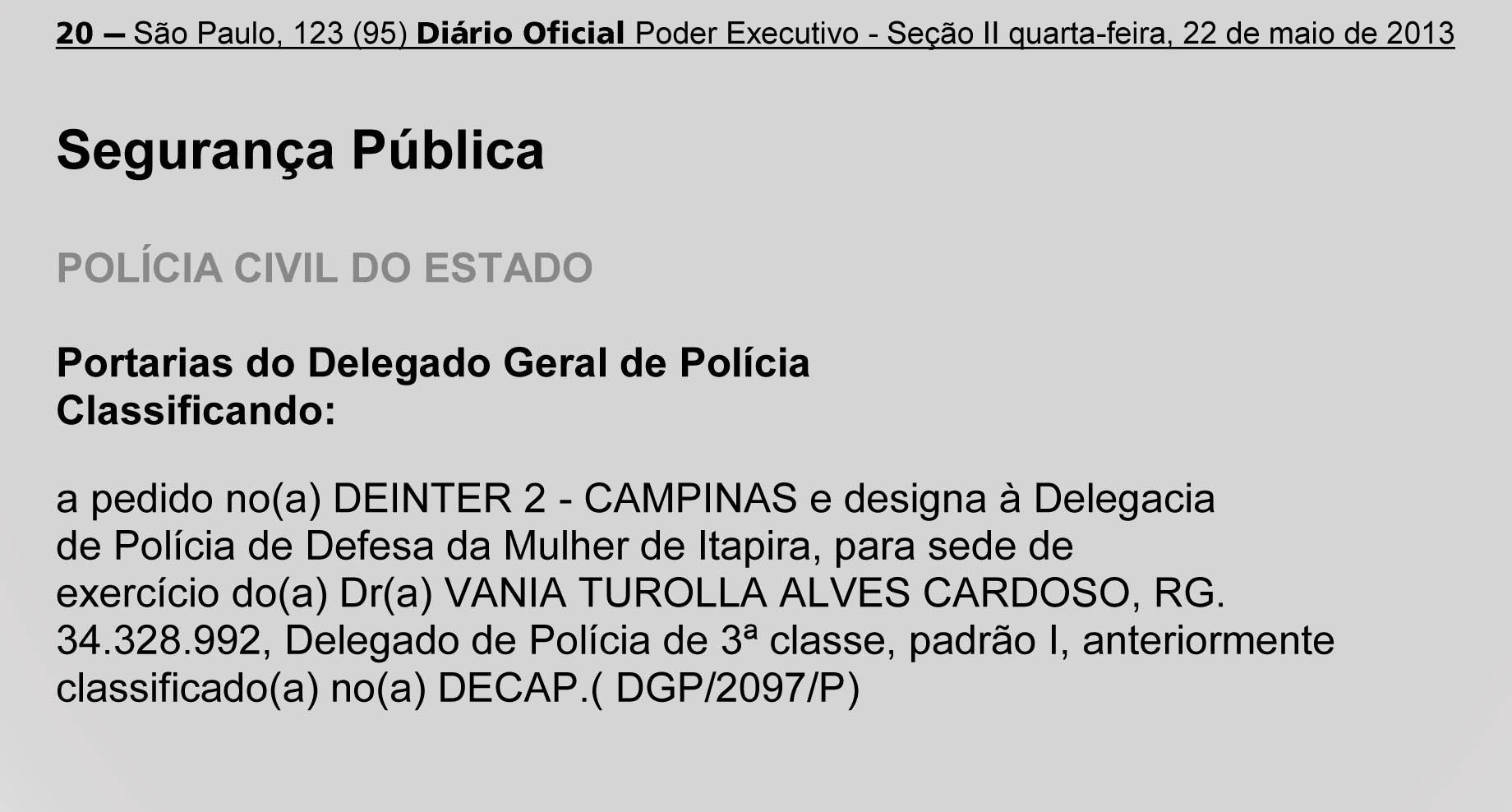 Publicação no Diário Oficial desta quarta-feira (22 /05), a designação de uma