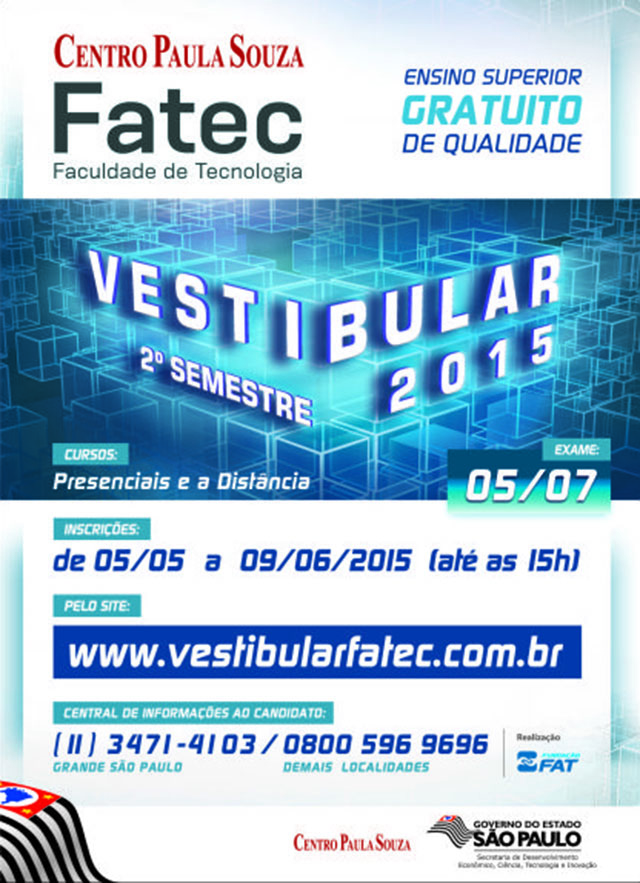 13/05/2015 | Vestibular FATEC - 2º Semestre 2015 - Informações
