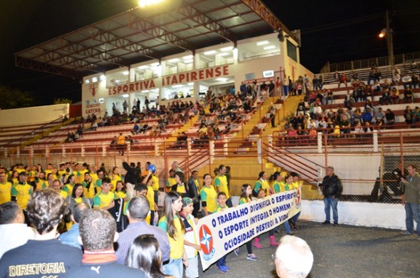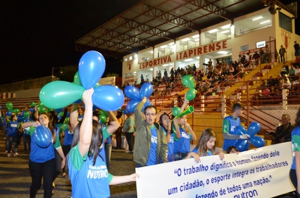 30/04/2014 | 37ª edição dos Jogos dos TrabalhadoresA 37ª edição dos Jogos dos Trabalhadores foi aberta na noite desta quarta-feira, 30, no Estádio Municipal Chico Vieira. Várias atrações estão programadas para a abertura, como o desfile das seis equipes, concursos de rainha e frases, show musical com Transasamba e artistas itapirenses e apresentação da Banda da Casa das Artes.