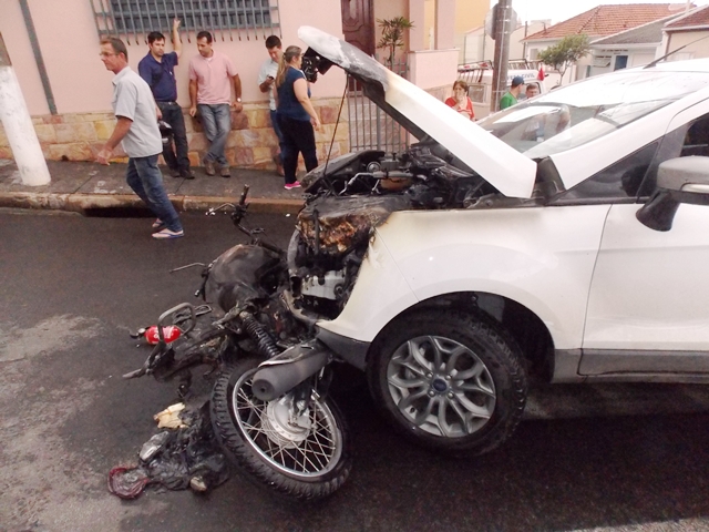 Na tarde desta segunda-feira (28), foi registrado um grave acidente envolvendo uma motocicleta e um automóvel Ecosport no cruzamento das ruas Duque de Caxias e Major David Pereira . A colisão frontal resultou em incêndio nos dois veículos envolvidos e em graves ferimentos no condutor da moto (do sexo masculino) e na acompanhante. Conforme apurado pelo PORTAL CIDADE DE ITAPIRA, a condutora do Ecosport, a assistente social F. T., foi atendida