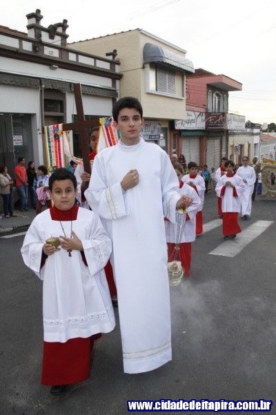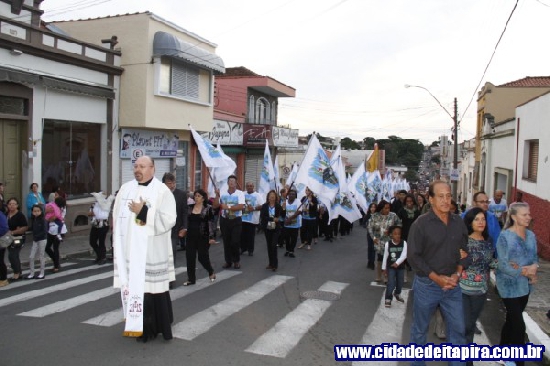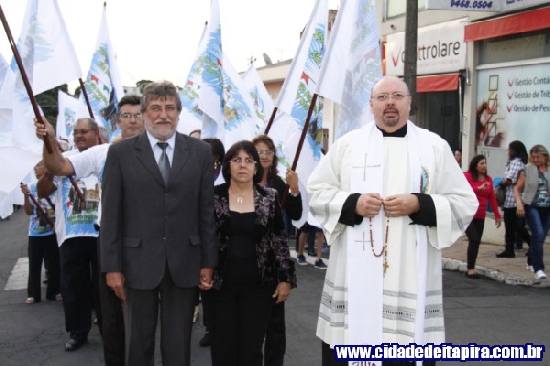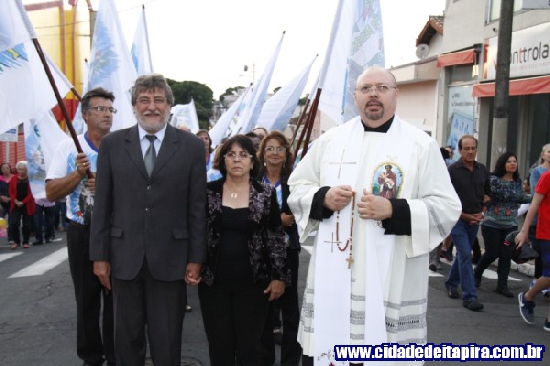 Logo à frente estavam os congadeiros, seguidos pelos festeiros, trio elétrico e, finalmente, pelo andor do santo padroeiro. Além do padre Bernardelli, os padres Tarlei Navarro, da paróquia Santo Antônio, e Erique Fernando Bordini, participaram do evento.