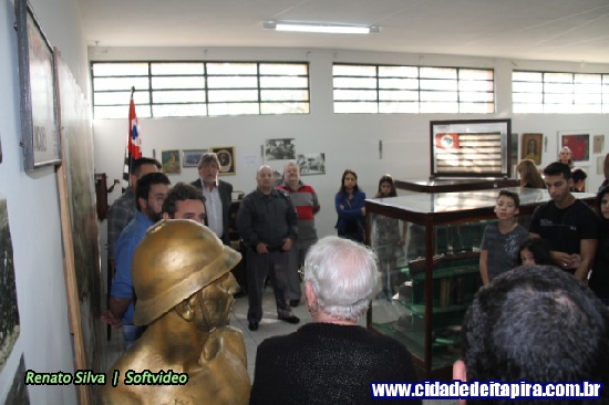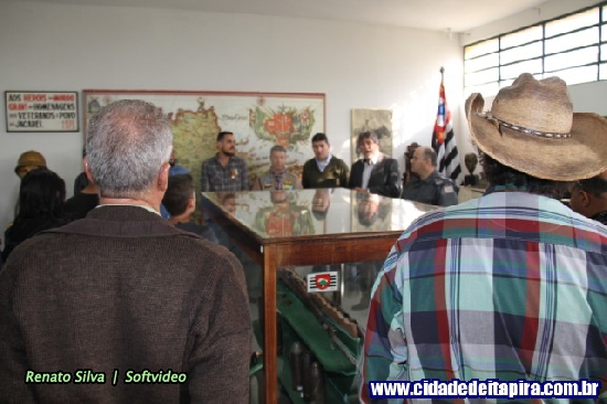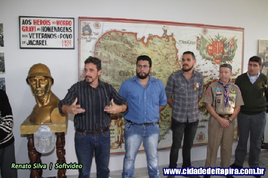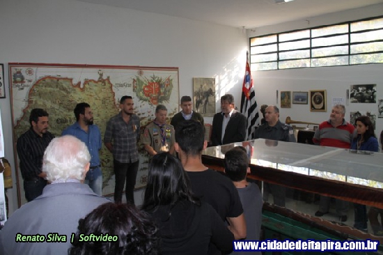 Aberta na tarde do feriado do Soldado Constitucionalista, celebrado na quinta-feira, a exposição “1932| A Cor da Guerra” transporta para a realidade vivida nos campos de combate itapirenses durante a Revolução Constitucionalista de 1932. Além de historiadores envolvidos na elaboração da mostra, a cerimônia contou com a participação do prefeito José Natalino Paganini (PSDB); do secretário de Cultura e Turismo, Marcelo Dragone Iamarino; do historiador Plínio Magalhães da Cunha – idealizador do Museu Histórico e Pedagógico ‘Comendador Virgolino de Oliveira’ –, do presidente e chefe do Grupo de Escoteiros de Itapira, Fernando Palmieri; do 1º Tenente PM Leonardo Botelho da Polícia Militar – na oportunidade representando o Capitão PM Antônio Marcos Sanches de Toledo, e do historiador Arlindo Bellini.