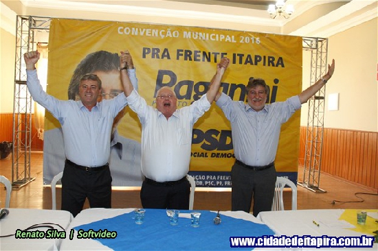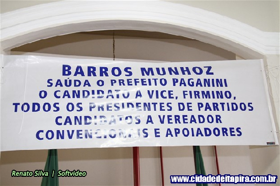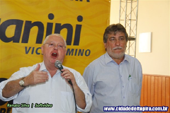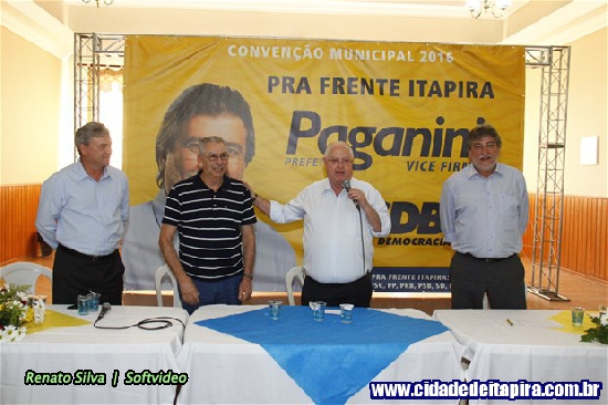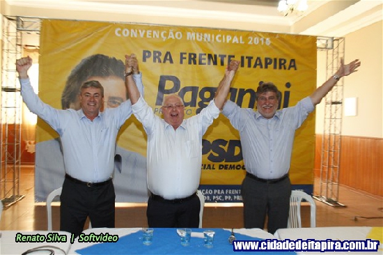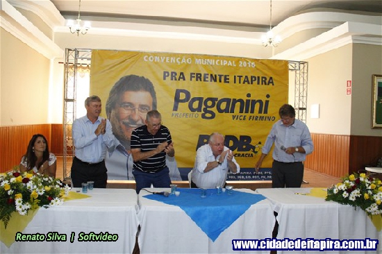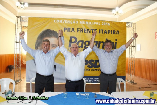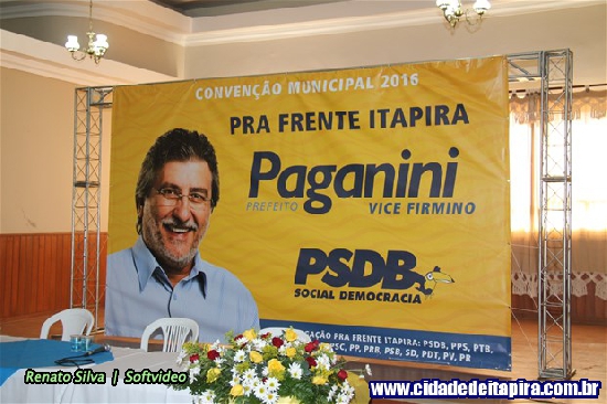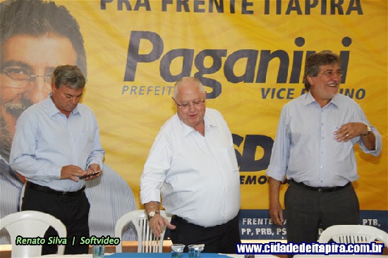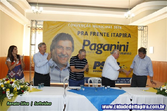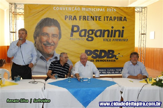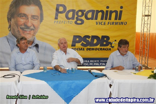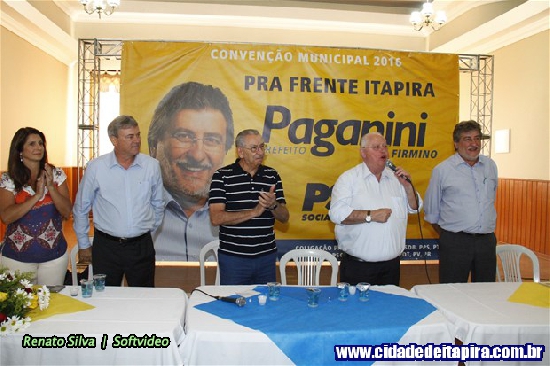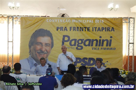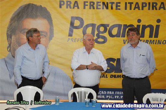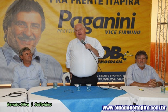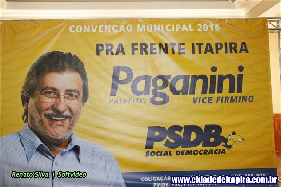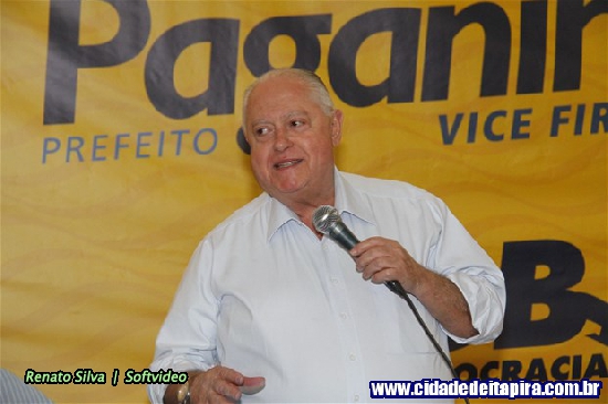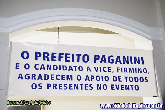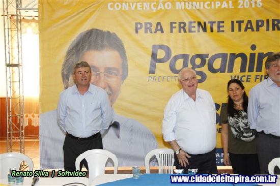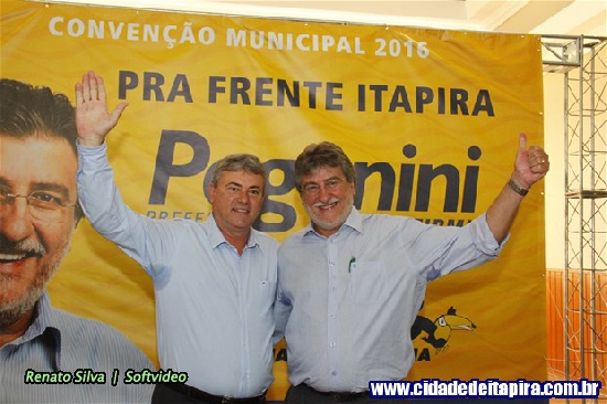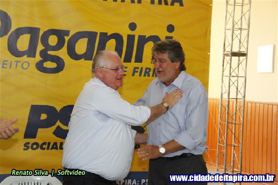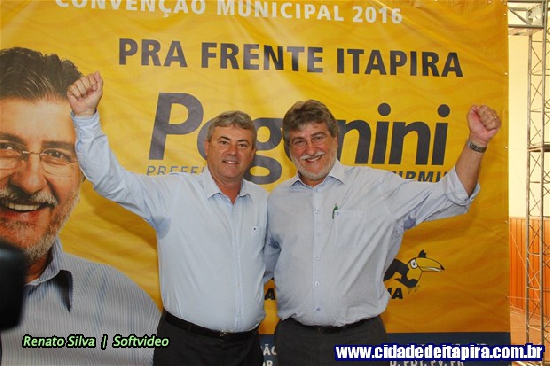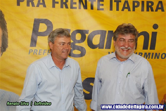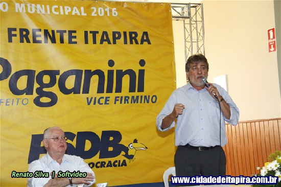 30/07/2016 | Paganini é candidato e anuncia Firmino Sanches de vice-prefeitoO prefeito José Natalino Paganini (PSDB) confirma, sua candidatura neste sábado (30), que vai concorrer ao cargo de prefeito de Itapira nas eleições deste ano. Ele também anunciou que terá como candidato a vice-prefeito o advogado e ex-bancário Firmino Sanches Filho (PR).